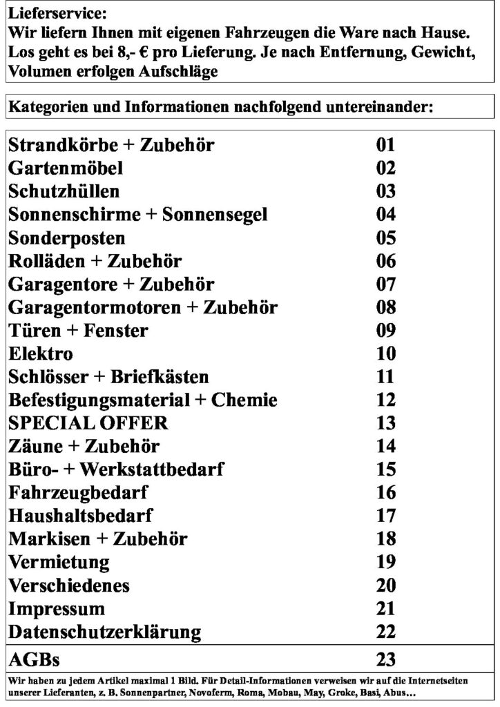 Verkauf + Montage + Reparatur + Wartung + Beratung + Aufmaß + Kostenvoranschlag